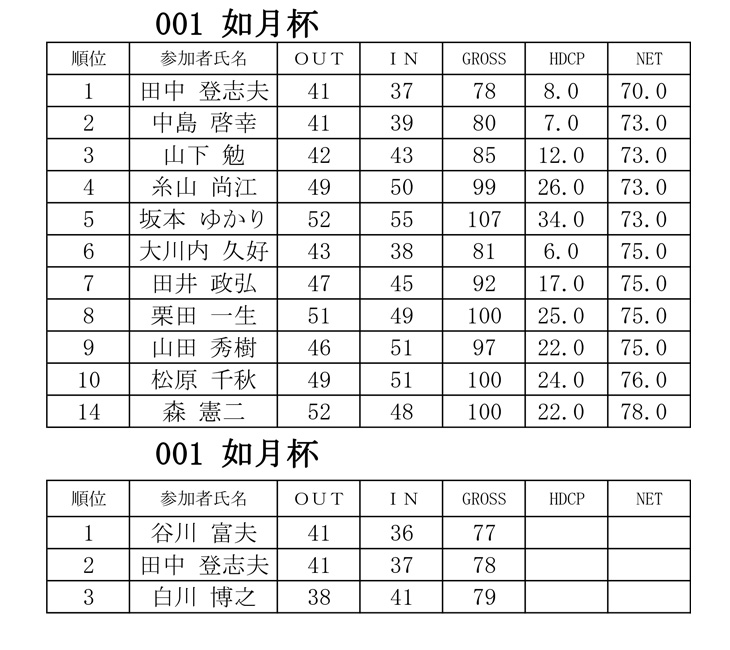 2024年2月「如月杯」成績表