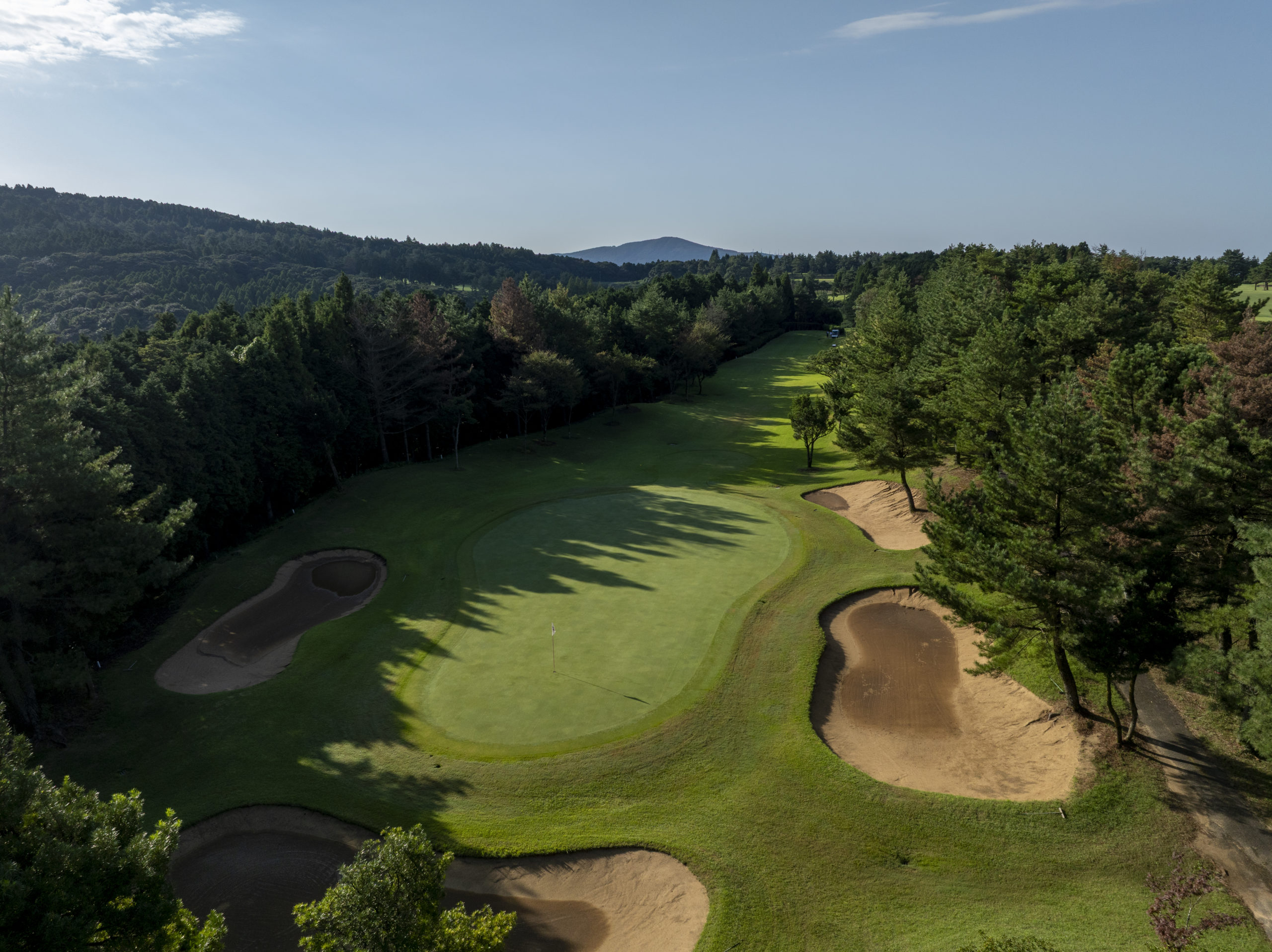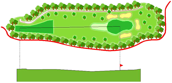 易しいホールだが風の影響を受けやすい、クラブ選択に注意すること。出来たら手前の方から攻めたい。